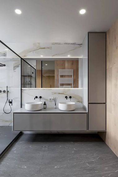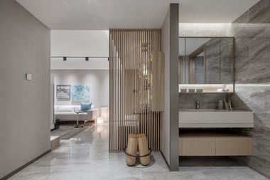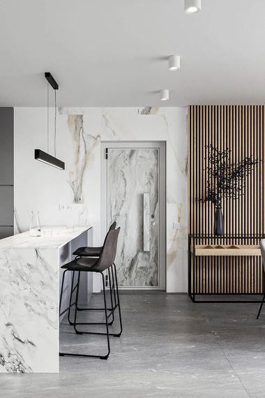大理石与木材结合,让家更有...