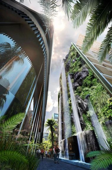 大尺度22米高人工瀑布 顶层...