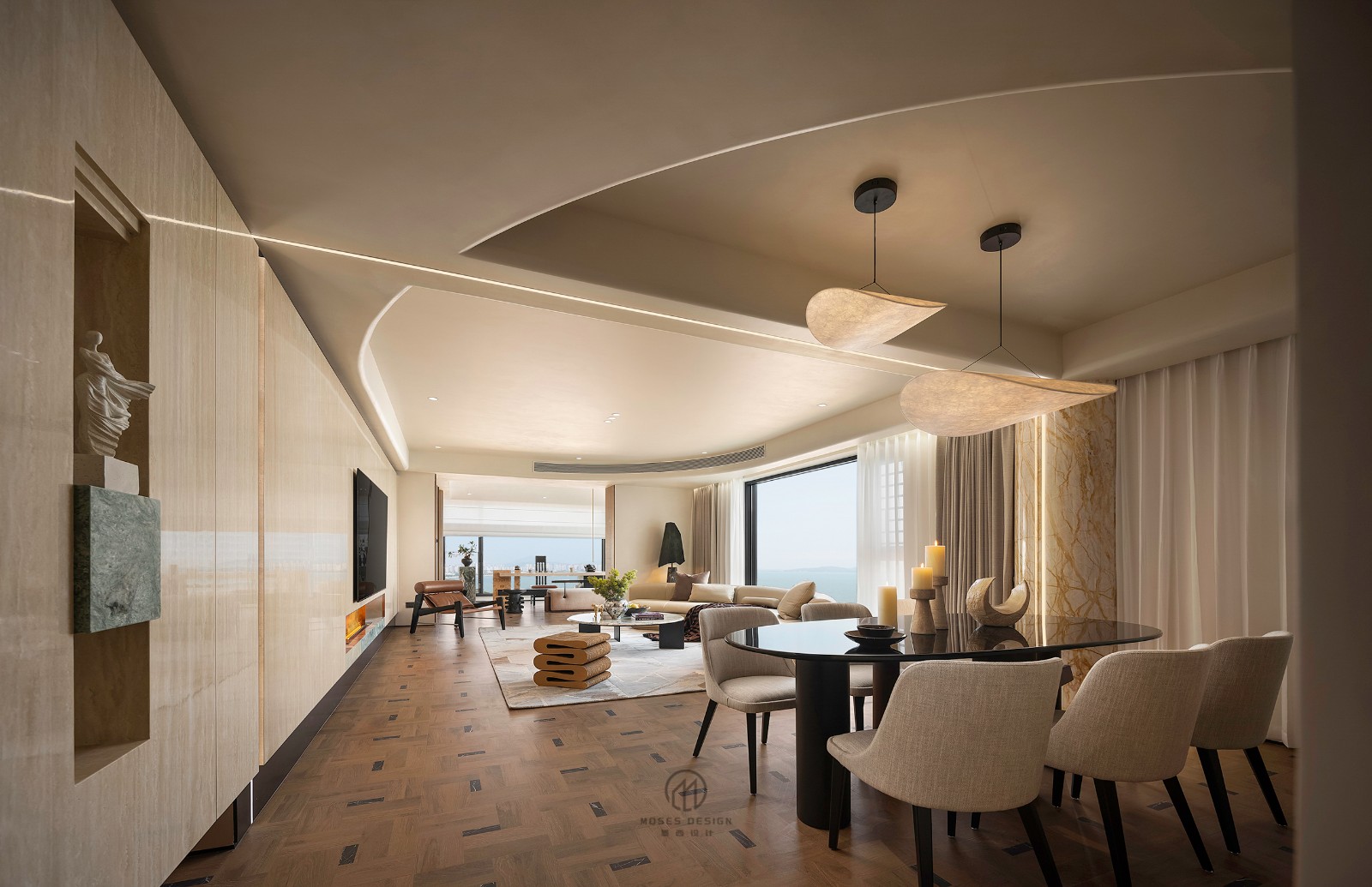 天然饰面贯穿始终,本地采购的木材,意大利大理石和花岗岩将奢华的表面与朴实无华的氛围融为一体。