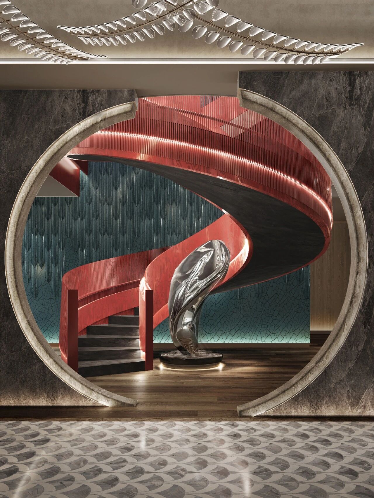 为了迎接居民和客人,温暖的大堂设有磨光的雕像大理石和鸽子灰色水磨石地板,由绒面革镶板和Beauval石灰石墙抵消。在私密的休息区,两张Korban设计的大理石沙发围绕着一个定制设计的法国石灰石平板咖啡桌,在一个柔软的灰色丝绸地毯上占据中心舞台,全部围绕着一个青铜色的黑色大理石壁炉。