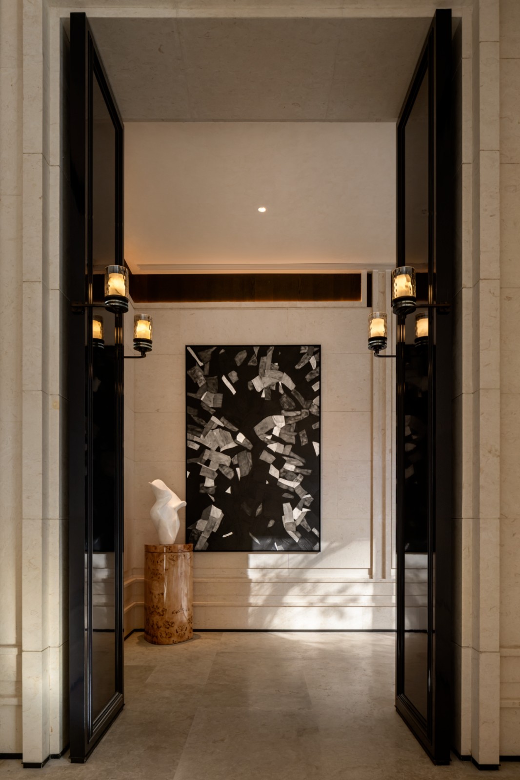 Keep the room with white walls and lots of light, if natural better, and let these pieces stand out and do the work. Your guests will be overwhelmed and you will feel comfortable.