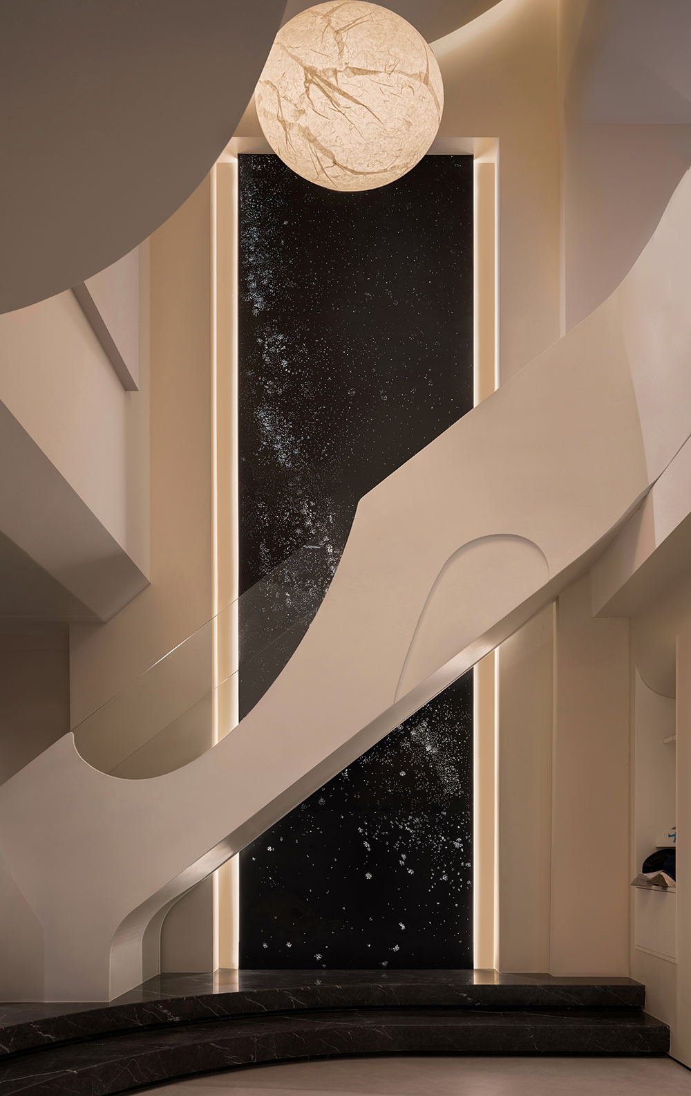 布料是制造服装所需要的。在丝绸和蕾丝的推动下,书架上的半透明纹理被重新设计成金属网和玻璃,以反映透视效果,以及光滑的玻璃与未装饰的板岩墙之间的对比,创造了一种艺术品味,通过转换后的视觉错觉,展示了主人对阅读时尚书籍的浓厚兴趣。