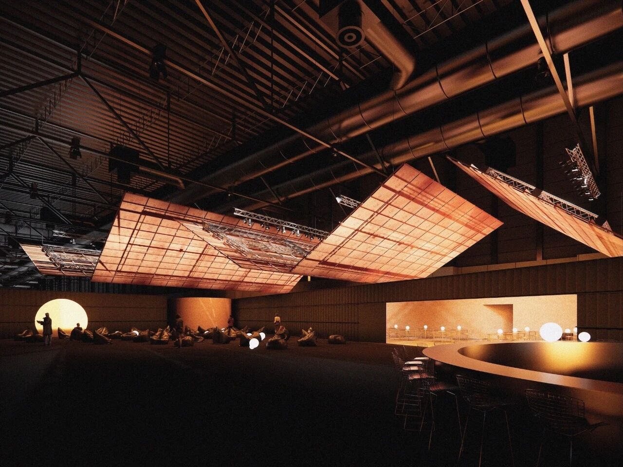 沙盘展示区的设计,以古朴的色调为基础,以白色的体块为界面,再铺陈以自然的灯光,营造出质朴而澄净,宁静而空明的意境,让视线聚焦在空间中心。