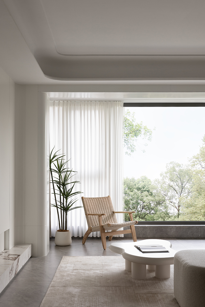 Despite the rigidity and harshness of the dominating building material – concrete, the home still manages to feel integrated within the landscape. A slab, seemingly thin and fragile offers a counterbalance to the solidity of repetitive columns that rise out of a rippling pool of water. Light-weight glass cladding brings transparency to the project, allowing greater connection between the outer environment and the interior. The distinction between the two is further blurred by a lack of air-conditioning in shared living spaces. Instead, opportunities for natural ventilation are utilised to maintain comfort. The resistance to create an artificial environment separate from the landscape is what makes this project so special, as it becomes a lens through which to experience the natural world. 尽管占主导地位的建筑材料-混凝土的刚性和粗糙性,房屋仍设法融入景观之中。一块似乎很薄且易碎的平板可以抵消从起伏的水池中出来的重复柱的坚固性。轻巧的玻璃幕墙为项目带来了透明度,使外部环境与内部之间的联系更加紧密。共享居住空间中缺乏空调,进一步模糊了两者之间的区别。相反,利用自然通风的机会来保持舒适感。创造与景观分离的人工环境的阻力使得该项目如此特别,因为它成为体验自然世界的镜头。