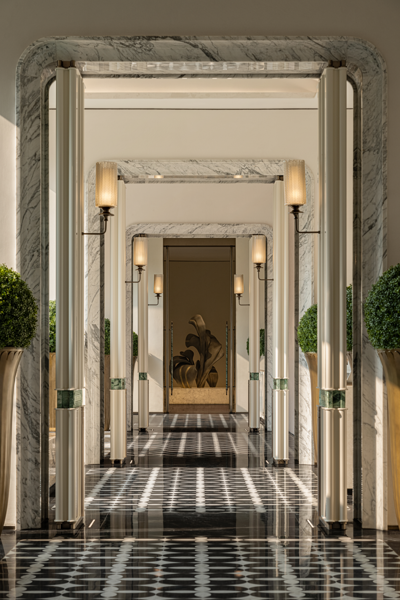 本案位于武汉,由于原建筑的特殊性,使得客厅空间性质较为复杂,空间相近很难联动空间。设计师利用藏品通柜将整层的空间连贯起来,让空间更加轻盈通透。入口从观赏鱼池到客厅层次递进,划分两段式布局,功能相对独立又有连接。大理石地板与金属装置吊灯充分点缀,将当代质感的美学风度演绎得淋漓尽致。