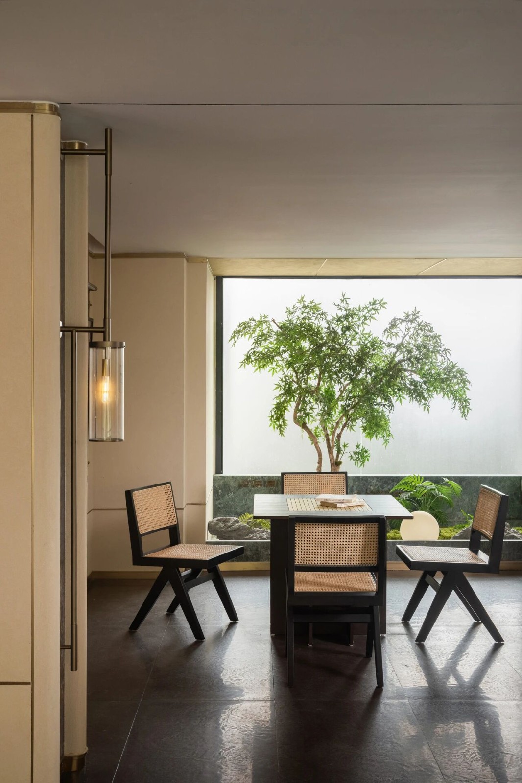 特别设计的釉面瓷砖之间晕染开的静谧蓝色,定制的金属和混凝土穿插其中,为立面增添了建筑感。材质间交织呼应,如同一件精致的乐器。这座点缀了宝石般的城市纪念物,不仅实现了商业功能,更为居民带来了更多对城市纪念意义的期许。