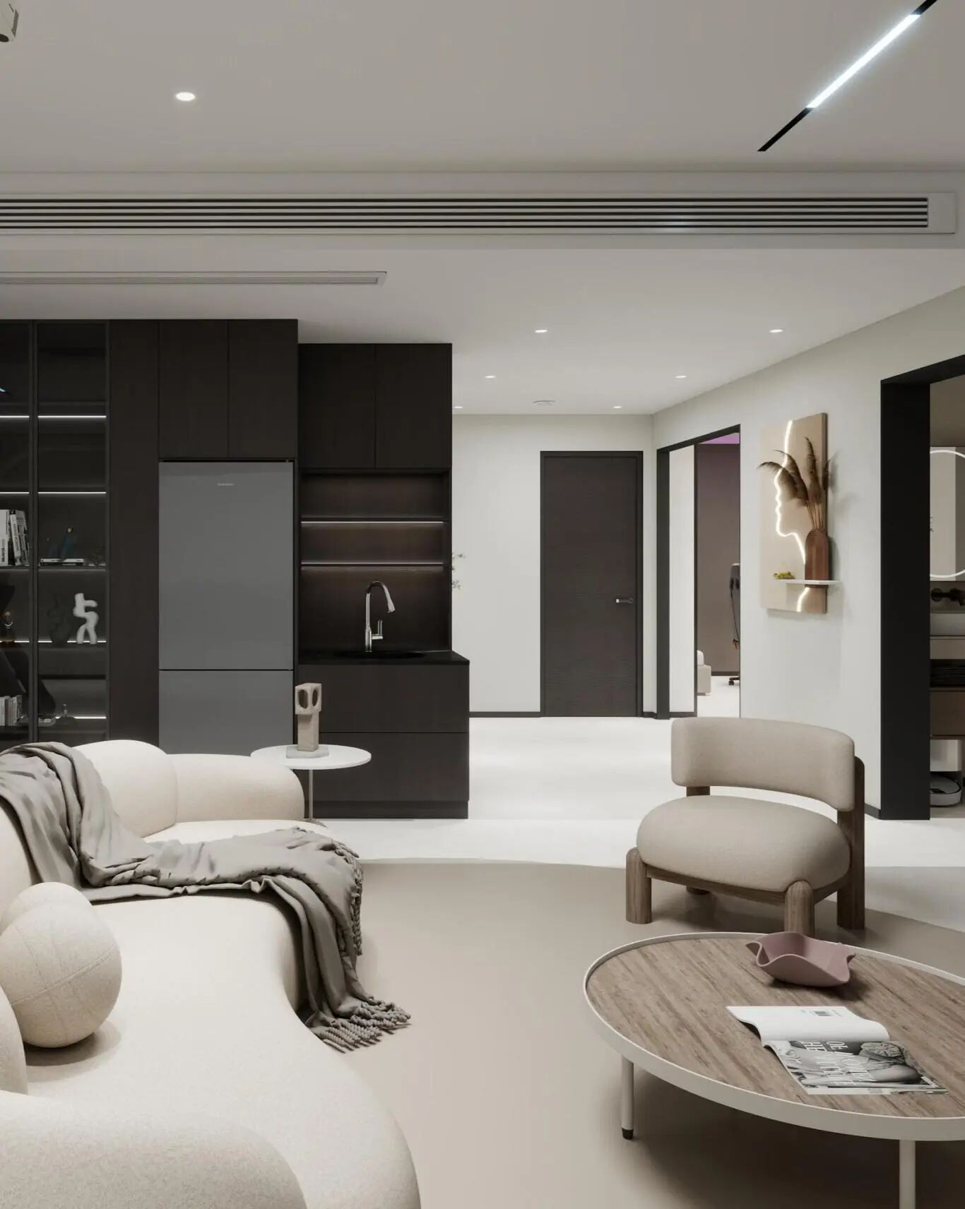 项目的设计灵感源于天然形成的石洞地貌,建筑师将自由的曲线经过艺术化的处理后转变成弧面的墙体,并通过定制的饰面材料覆盖表皮,借以模拟天然石材的纹理质感。为了保持整体的有机氛围,建筑师在家具遴选时十分着重其材质色调的和谐对比,即便深浅明暗有着丰富的变化,也都围绕着特定的色域加以表达,营造超越普通展示空间的深远意境。