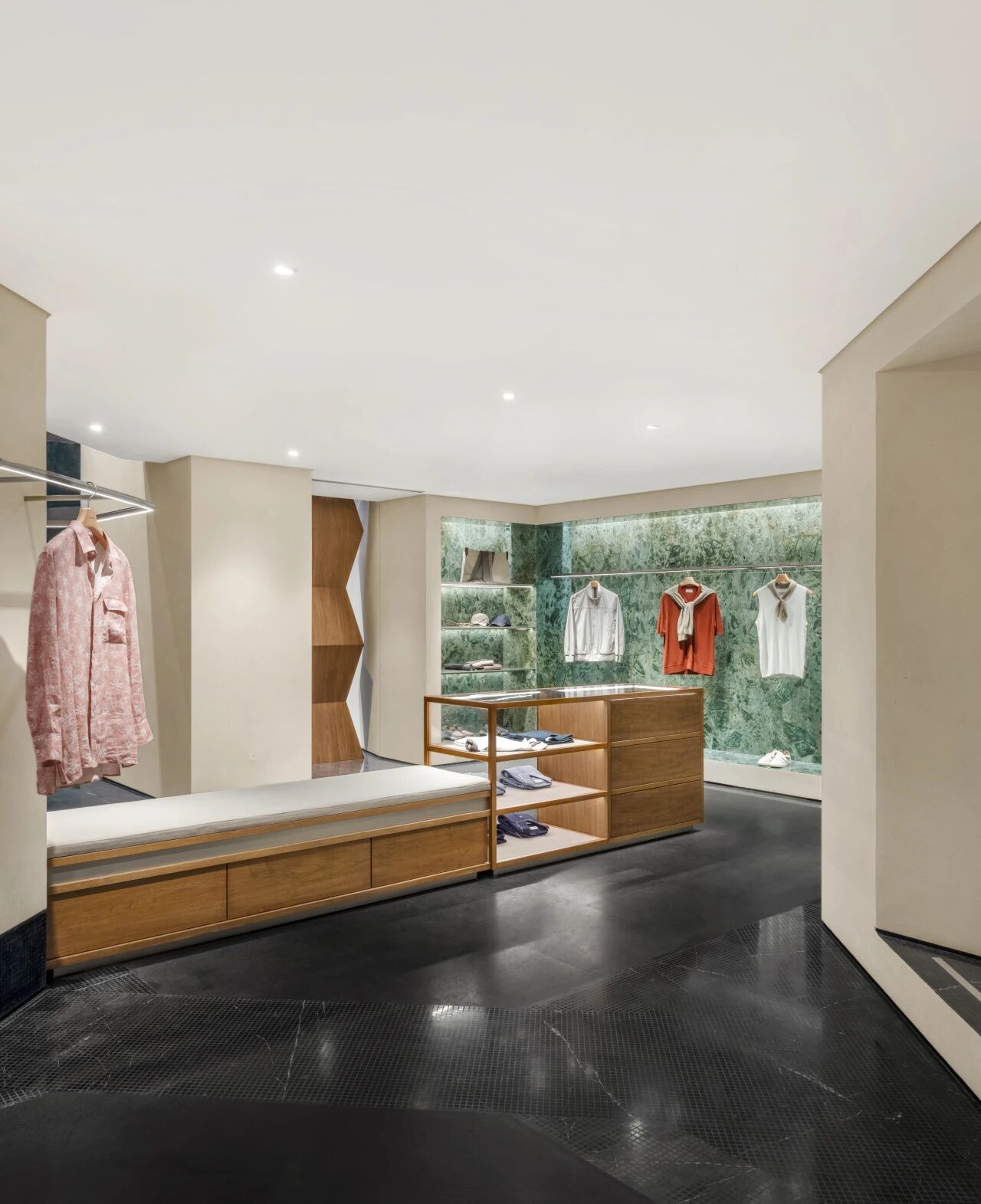 由Nova studio设计的极简主义概念商店Concept store以混凝土与清新的绿色材料为主要视觉元素,在镜面金属及织物的映衬下形成了变化丰富但又和谐统一的空间氛围。