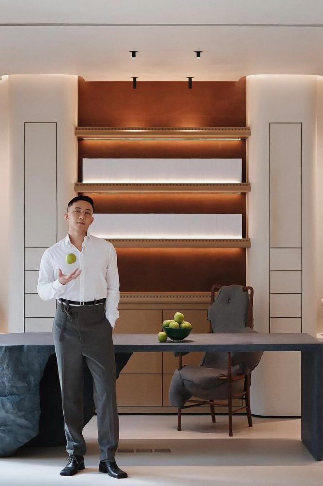 在咖啡区,镜面台面上覆盖着满满的路易威登(LV)经典 Logo,给人一种既奢华又现代的视觉冲击。