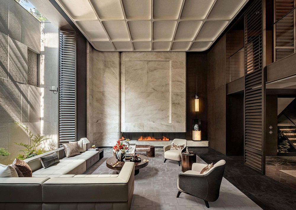 设计师从青瓦飞檐与窗格棂条中汲取灵感,借六米挑空引视线向上,再现了传统建筑的围合意境。既强化了空间的张力,又通过现代语汇转译了在地文化的多元结构。