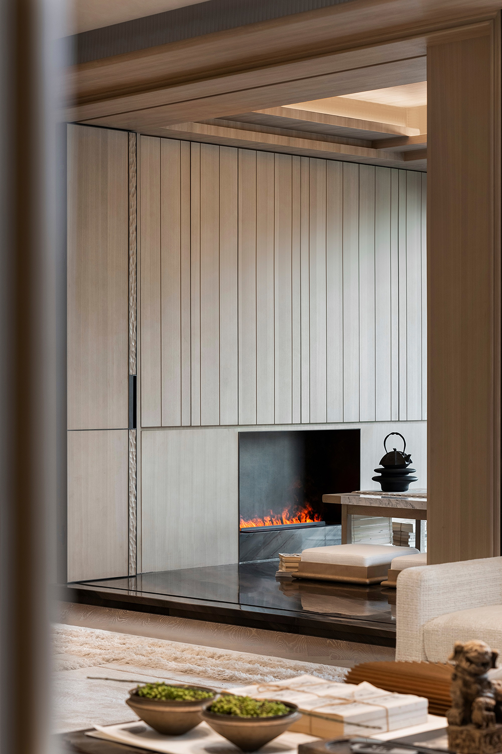 客厅一隅藏有一处可开可合的书房,可独坐阅卷、静思,也可与知己漫谈,动静之间,皆是从容的智慧。