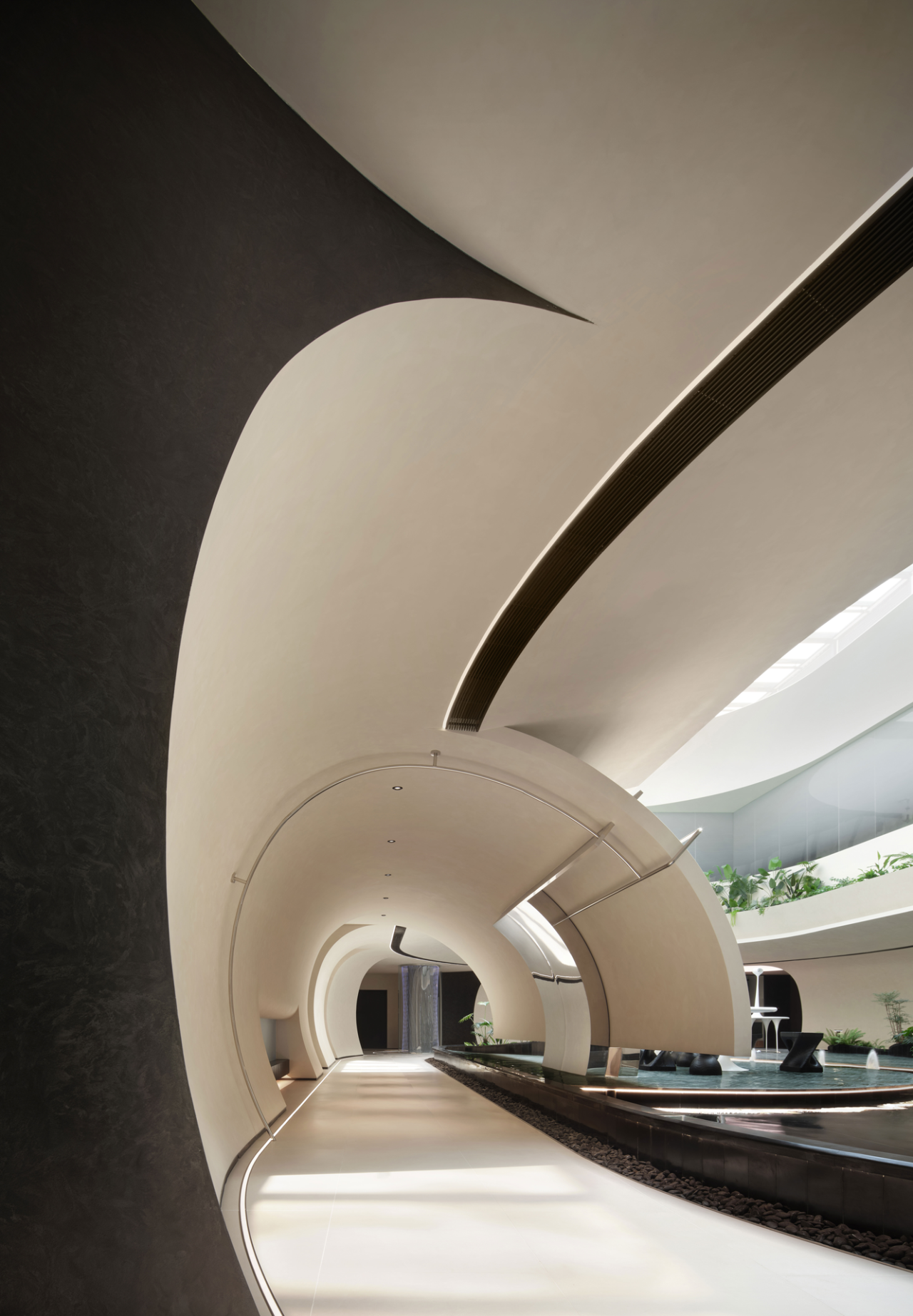 在馆内的空间布局上,设计师匠心独运。不同的功能分区既各自独立,又彼此连通,虽分隔却又相连,形成了一种“隔而不断” 的精妙格局。