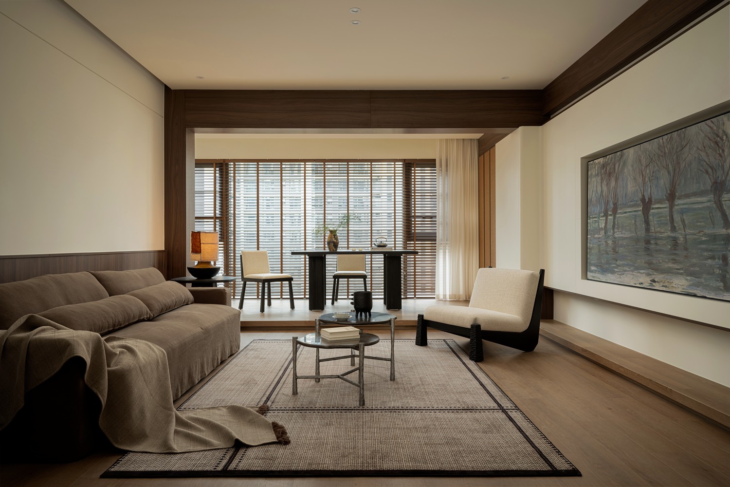 融合当代设计手法和东方美学,将青山、飞瀑、幽泉、溪石、深竹这些景物意向构筑在空间之中,营造登高遥望的山中之景。