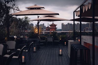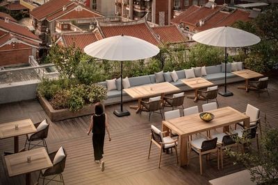 于是,酒店大堂被置于顶层,用最具优势的景观条件锚定住客对酒店的第一印象,激发心底的向往。传统酒店大堂功能以轻松的方式,消隐在屋顶,与餐厅、酒吧和花园无界相融。办理入住的过程,在欣赏城市景观和一杯吧台饮品的过程中自然发生。在泉州城市上空,穿过七栩的生活场,轻盈切换进度假的节奏。