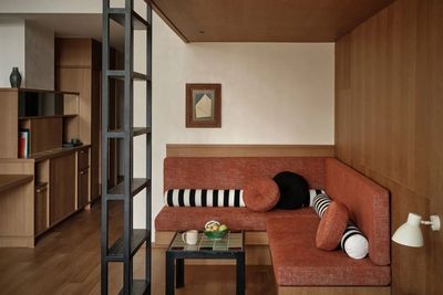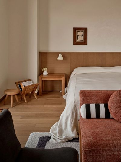 相比之下,家具主体保持克制,以木色、黑色与白色为基底,将色彩表达集中在织物上,如抱枕、床盖等可替换的家具软包。为空间带来可持续的趣味,随着酒店的持续生长而不断更新。