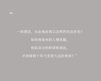 在“城市生活方式酒店”的命题下,七栩钟楼尝试以新的姿态提供另一种思考。以身心安住为回应,在细腻的情绪感知中,延续泉州的城市肌理,也在想象中开辟一个个新的当下。让每一个抵达,生动,交融,在场。一种关于泉州的另一种「期许」,开启自得当下的新旅哲学。