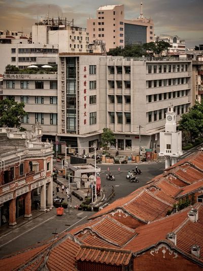 设计团队第一次来到场地时,随电梯到达顶层,即被这开敞又丰富的城市景观所打动。大面积绵延起伏的红砖坡屋顶铺陈在视野中,民居的剖面层层叠叠,仿佛城市的毛细血管,虽复杂散乱却充满生命力。唯一戳破天际线的是开元寺的两座石塔,在夕阳下显得古朴肃穆。刺桐城,那被时间长河缓缓淌过的悠远又谦逊的气息扑面而来。