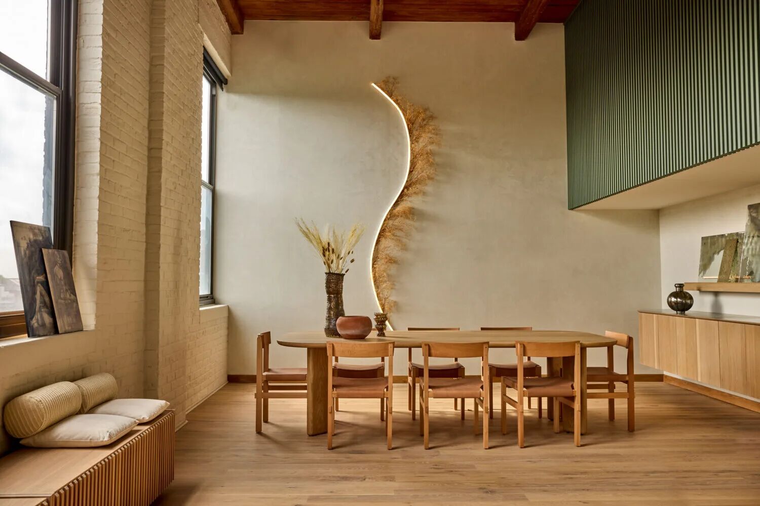 “我静坐其中,仰望着 4.9 m高的工厂阁楼天花板,聆听客户讲述这座建筑的历史以及他们与它的个人联结故事,” 维洛塞特说,“这个地方是创新与变革的磁石,设计需要传递同样鼓舞人心的精神。我希望人们一进入住宅就能感受到向上的力量。”