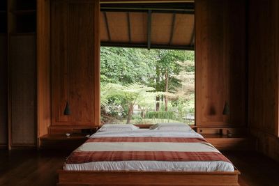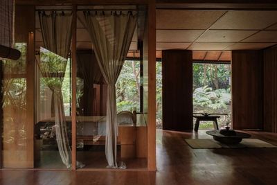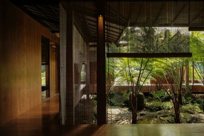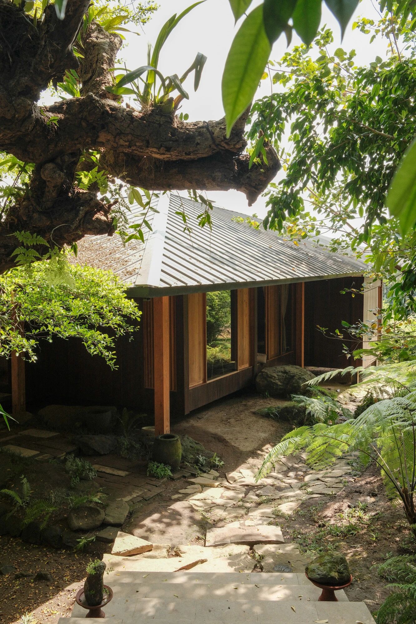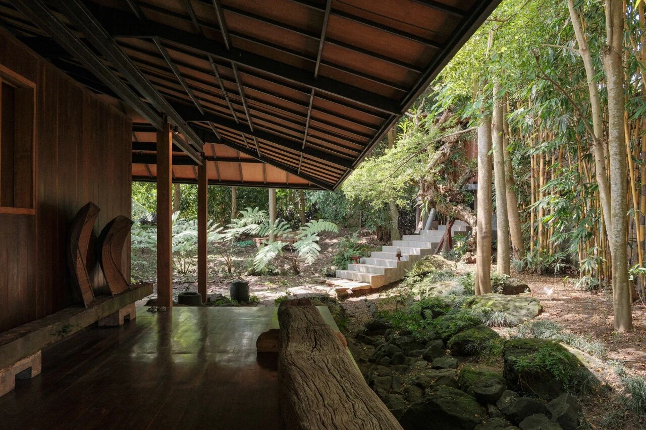 Authenticity of materials permeated every detail: the recycled ironwood exterior walls weathered to a moonlit gray, revealing the beauty of aging; ceilings of Japanese hand-laid banana-fiber paper undulated like breathing skin when backlit; river stones set into teak steps offered alternating cool and warm sensations under bare feet.