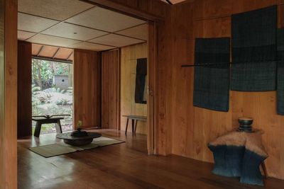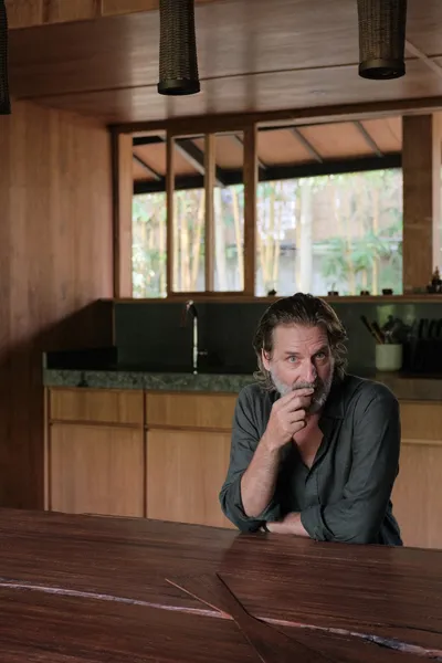 屋主 Sebastian Mesdag 与珠宝设计师妻子 Ayu Purpa ,则是将自然融入生命的践行者。他们在巴厘岛创立 Tian Taru 工作室,用植物靛蓝染制有机织物。“靛蓝不征服布料,” Sebastian 抚过深蓝布匹,“它邀请纤维共同呼吸。”当这对艺术家夫妇委托挚友 Conchita 设计住宅时,一场关于等待的建造仪式就此开启。