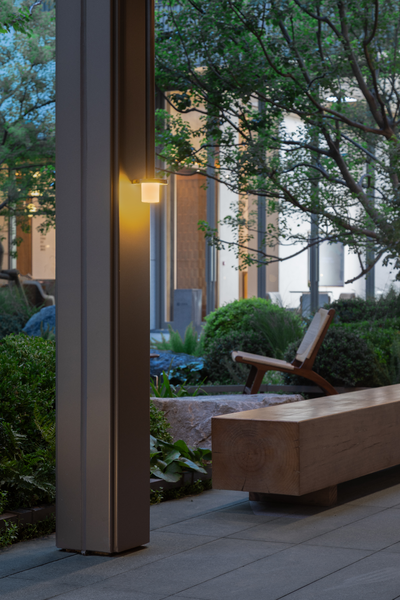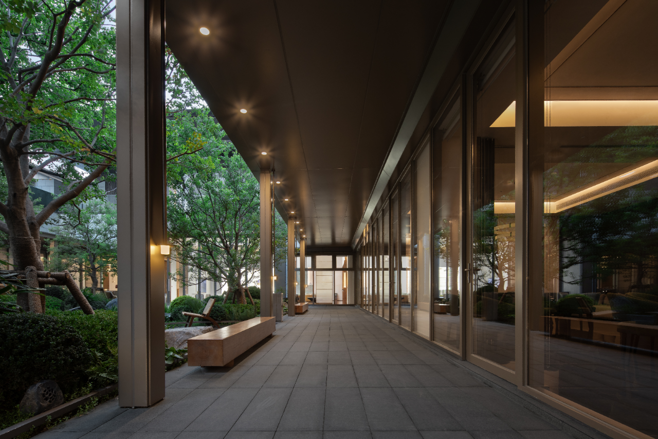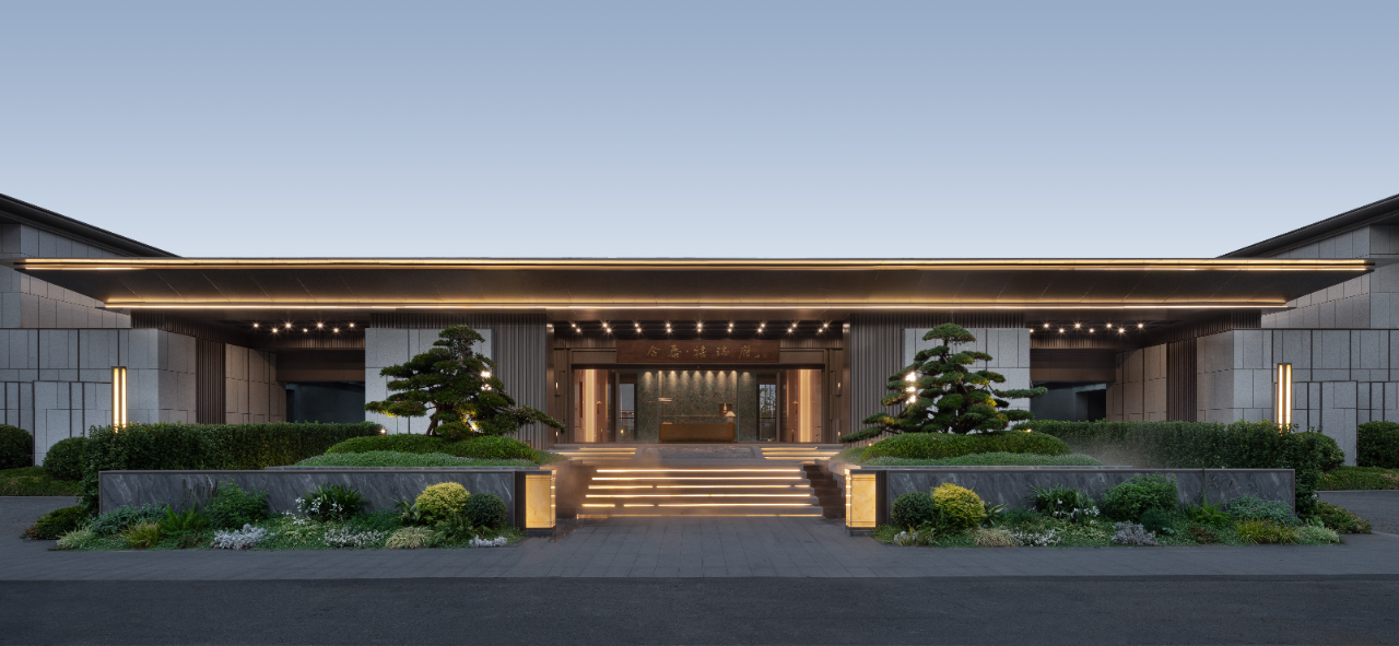 在一层入口设计中,秉持现代与东方意境融合的理念。建筑外观以简洁大气的线条勾勒轮廓,金属与石材材质碰撞。将景观元素与建筑入口深度融合,不是简单的外围绿化,而是让景观成为入口建筑的一部分。