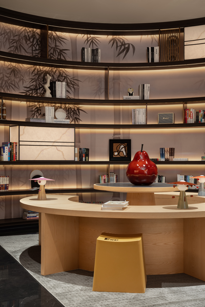 负一层接待厅电梯右转的儿童休闲区,延续整体雅致基调,以温润木色、柔和曲线呼应设计语言,借弧形展架、巧思摆件传递童真,既满足孩子探索欲,又适配会所定位。