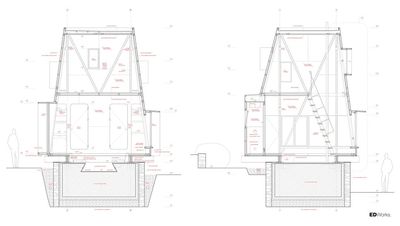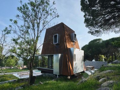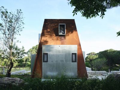 设计的短期租赁小屋。小屋的选址落脚于一块葡萄园现存的干砌石墙内,旨在充分利用现有的人造结构,最大限度地减少施工过程对当地生态环境的干扰,打造一个从设计、建造到后期使用,均能满足可持续性目标的避世居所。