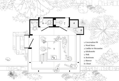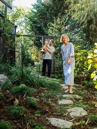 定制了一个与小屋相连的花园凉亭,为一家三口的日常活动提供一个开放而自然的环境。