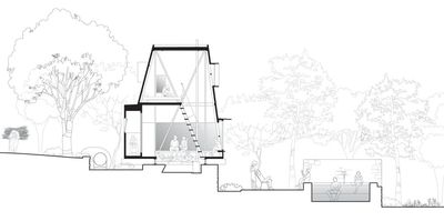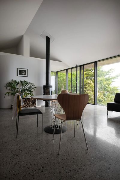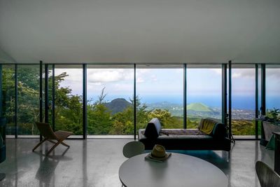是一处远眺镰仓的简朴小屋,项目业主是一位热爱户外活动的艺术收藏家,他认为自然是我们所能接触到的最完美的艺术品,因此希望这座建筑拥抱周边环境,提供一个嵌入自然的开放空间。