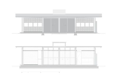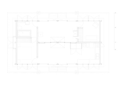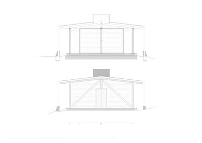 小屋平面沿两条轴线呈对称式布局,中央的滑动面板系统将室内空间划分为两个可以灵活开放或关闭的区域,同时满足空间的共享性与私密性。观景一侧的主立面使用半透明的材料弱化内外环境的界限,并在起居室的屋顶中央增加了一扇用于采光的天窗,见证自然的四时节律与生命本真。