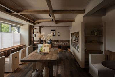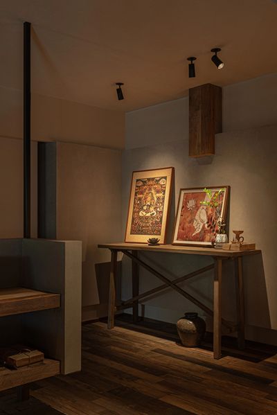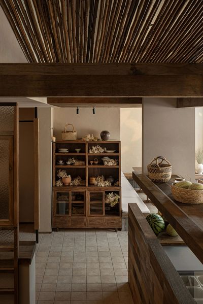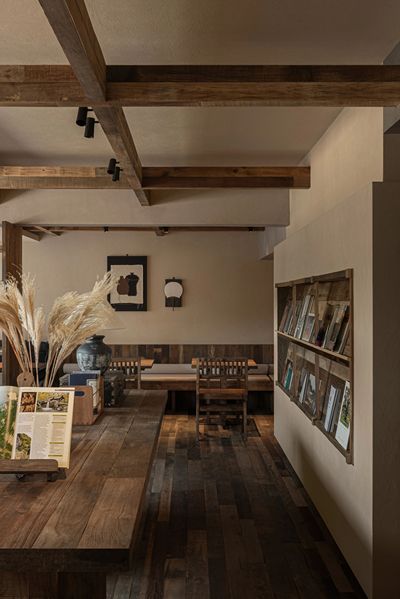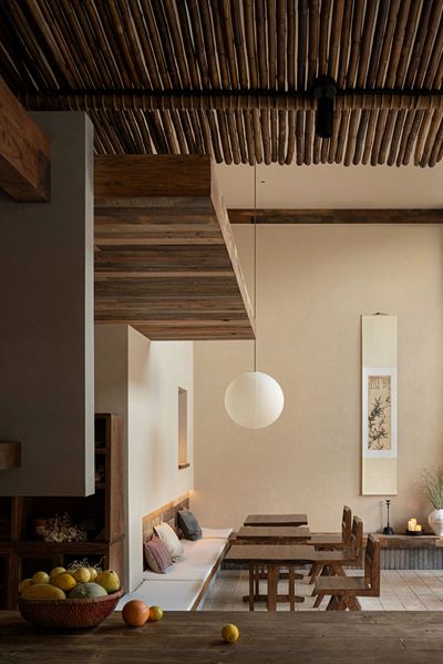色调是大地系的温暖原木色,现代感与古朴感交融得恰到好处。空间布局疏朗通透,避免拥挤感,让光影得以自由流淌。氛围的核心在于“静”与“凉”。
