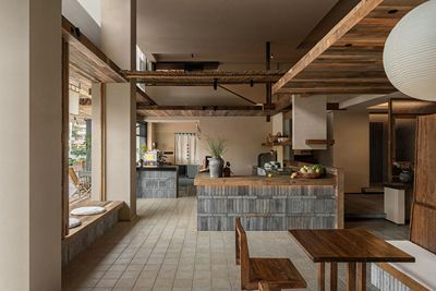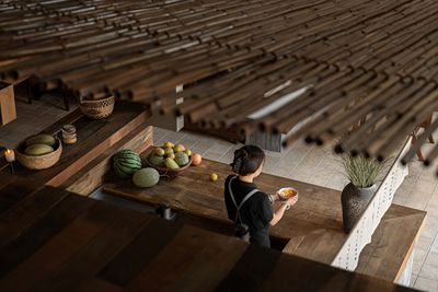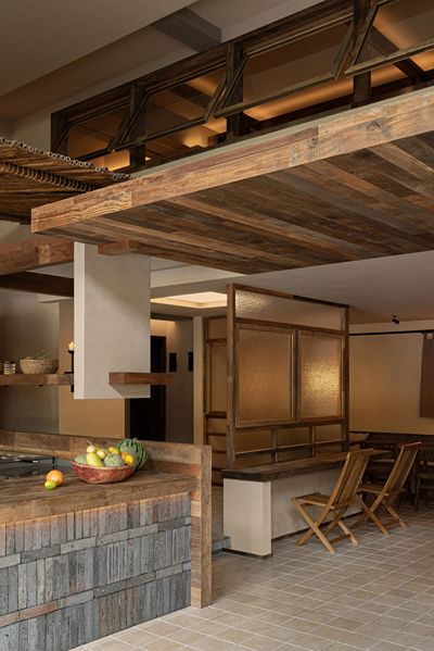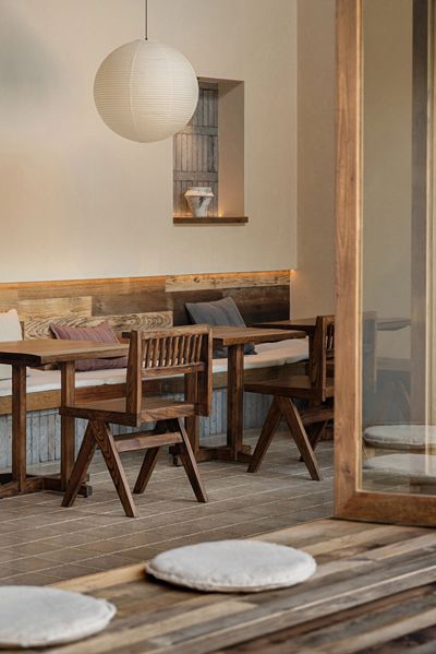 A warm, wooden palette unifes the space, perfectly balancing modern and rustic sensibilities. The airy, open plan is designed for clarity and movement, creating an evolving display of light and shadow. At its heart, the atmosphere is an experience of cool tran- quilityl.