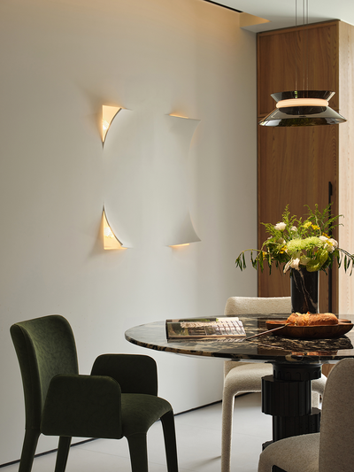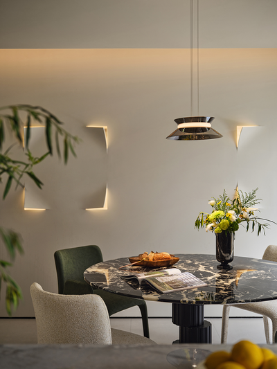 吊灯如悬浮的艺术装置,在极简基调中炸裂开热烈的视觉张力,让色彩不再是装饰,而是空间的