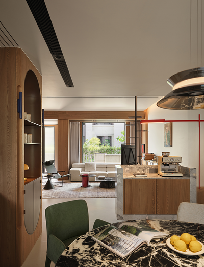 从咖啡角的精致陈设到起居区的舒适布局,每一处功能设计都围绕“人的生活习惯”展开,让空间成为“服务于生活,又高于生活”的情感容器。