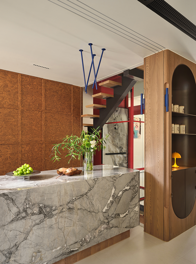“突破常规的视觉叙事”为核心设计理念,通过强烈的色彩碰撞、雕塑感的建筑构件与艺术化的软装装置,在极简的空间基底上构建出极具张力的当代美学场域。