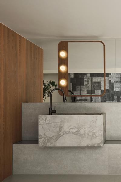 大理石纹理的洗手台,凭借其独特的肌理与质感,为空间注入轻奢精致感。