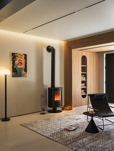 燃烧的火焰为空间带来温暖的视觉与感官体验。艺术画作的点缀,为空间注入个性与创意。