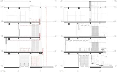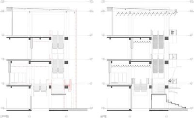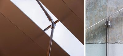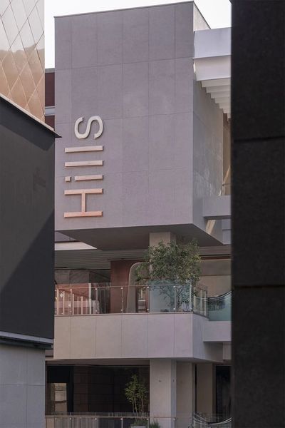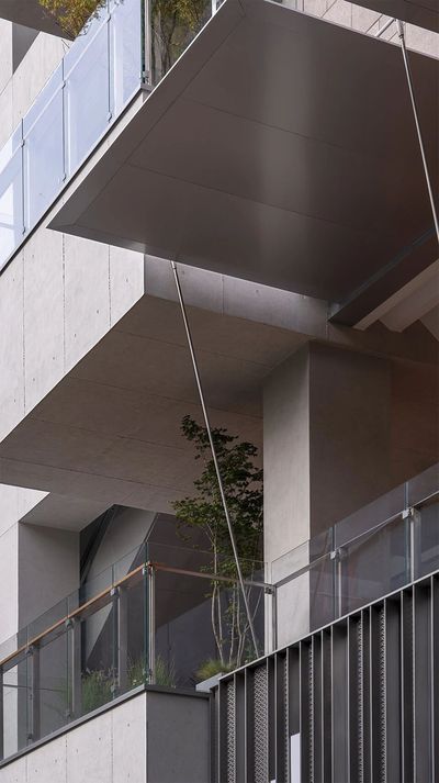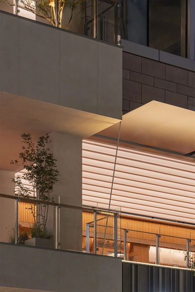新立面的材质语言冷静而克制,以浅灰色混凝土作为基底,但在关键的互动界面则介入了阳极氧化铝等精致的金属质感。纤细的金属拉杆支撑着外挑的遮阳棚,使其在视觉上显得格外轻盈。精心布置的绿植花池作为