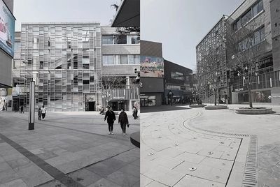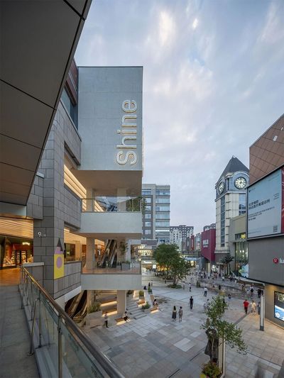 号楼,以一种全新的、开放的姿态重新融入祥云小镇的公共生活。拆除幕墙后,建筑内部的商业活动、人流和灯光被完全释放,共同构成了一幅充满活力的、层次丰富的立面图景。