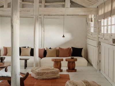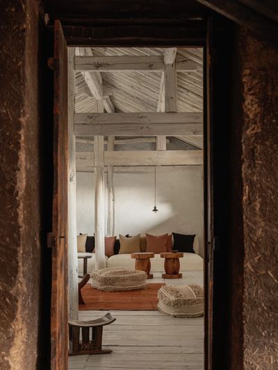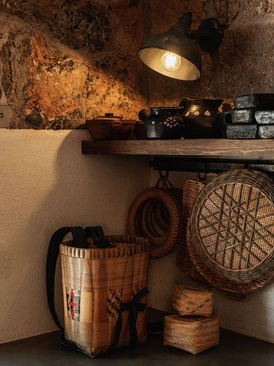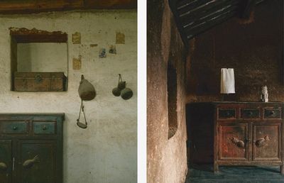 原来用过的边柜,坐过的木凳,还有阿姐背过的背篓和用过的水瓢、土陶罐都一一保留下来,谢柯和团队还从当地市集淘回了各种老家具和小摆件,藤编的竹椅,老师傅刻的石狮子,包浆的长凳……