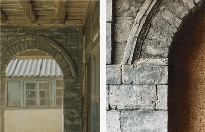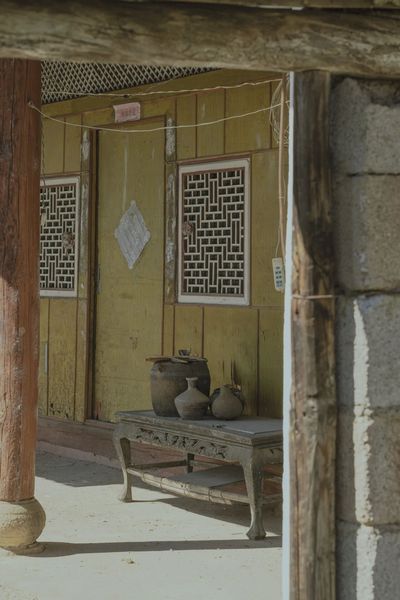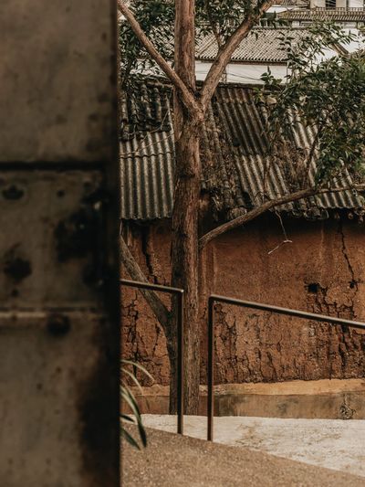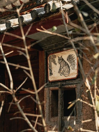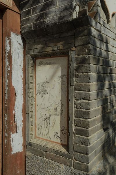 两座院子,两个院门。一个铁门,一个木门,都被完好地保留下来。铁艺门,油漆褪色,锈迹斑驳,屋檐上的白漆旧迹斑斑,没有翻新,只是收拾得干干净净,依然有门神画上的狮兽守着,等人回来。