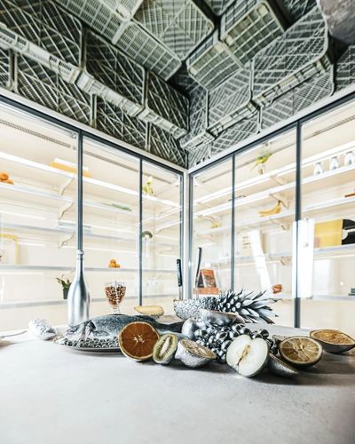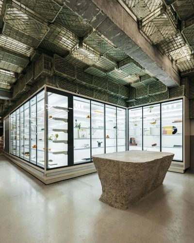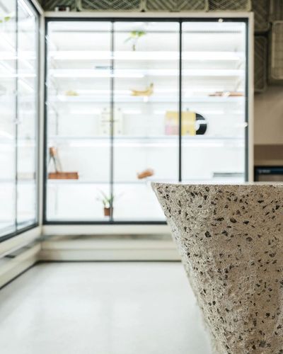 这些塑料盒不仅具有美学价值,还具有实际功能:它们内部装有LED照明系统、隐藏式的通风装置以及雨水收集系统。超市的内部设计同样延续了极简主义的风格。钢制货架与抛光混凝土地面相搭配,收银台则被设计成了具有雕塑美感的结构。间接照明巧妙地突出了精心挑选的商品,使每件商品都能在自身投射出的阴影中显得格外醒目。
