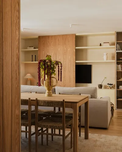 这套公寓面积为92㎡,业主希望保持设计的连贯性,将街区的独特韵味、人文氛围与宁静感也延伸至公寓内部。