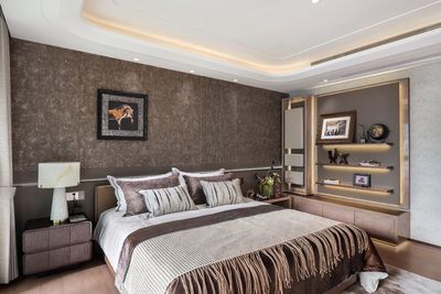 整体呈现雅奢风格,以咖系基调,辅以温润木饰与柔和灯光,营造沉静而不失格调的氛围。整体设计克制、雅致、富有艺术温度,既舒适宜居,又彰显生活品位。