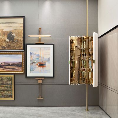 如艺术装置般矗立,金色金属与镜面的结合,让储酒功能升华为空间的视觉彩蛋,每一次取酒都是一场美学仪式。