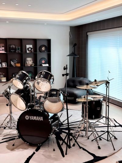 - 音乐空间里,黑胶唱片墙与雅马哈鼓组唤醒音乐热忱,艺术画作与专业调音台相映成趣,软装搭配紧扣音乐主题,让每一处布局都成为兴趣与生活的诗意联结,为居者构筑充满个性的休闲天地。