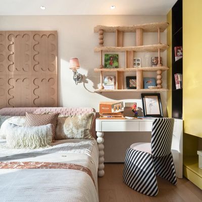 以粉色系与艺术感家具打造童趣,青春期女生内心世界的乌托邦,有着自己对美学和艺术的
