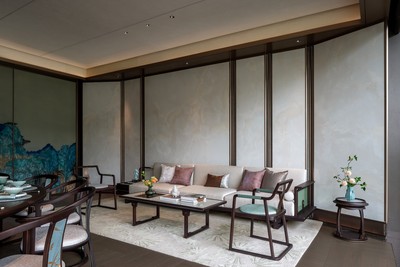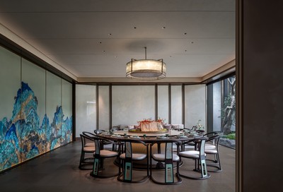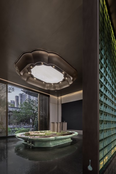 融合宋氏美学中轻柔、和雅的特点,用沉浸式的设计手法,以“艺术共赏、古今融合”两大核心内容,用现代解构语言演绎东方美学,在繁华的都市中探寻一分宁静生活。步入其中,映入眼帘的艺术挂画、流水瀑布、园林山石、石雕玉器....仿佛诉说着大宋的过去。斑驳的肌理构建了更为辽阔的思绪,曲径至豁然的动线也相应地营造了诗意般的氛围。