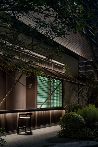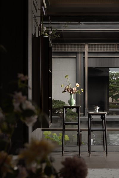 提取东方传统色中的天青、赤霞、松绿,点缀雪青、松花等活力色彩,视觉层次丰富,生机盎然,与刚劲枯枝形成了强烈的画风对比,游丝如气,一连空间似行云流水,消弭了回廊的冷彻。