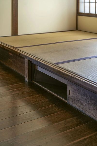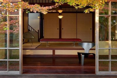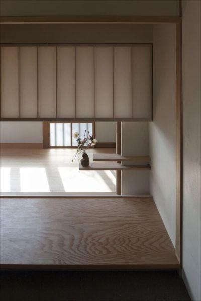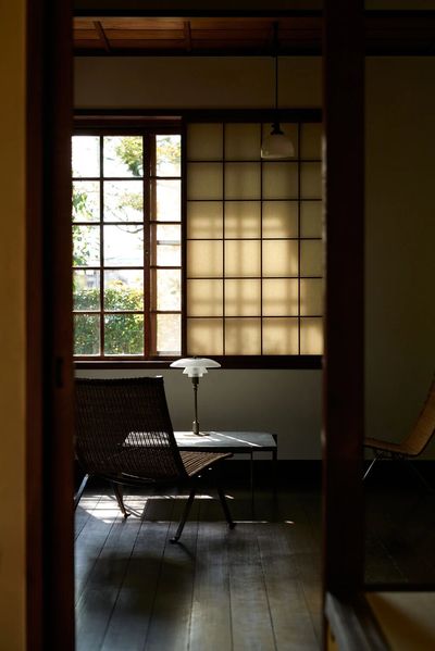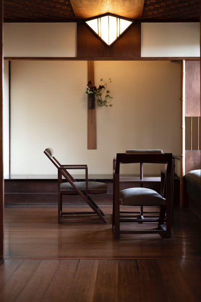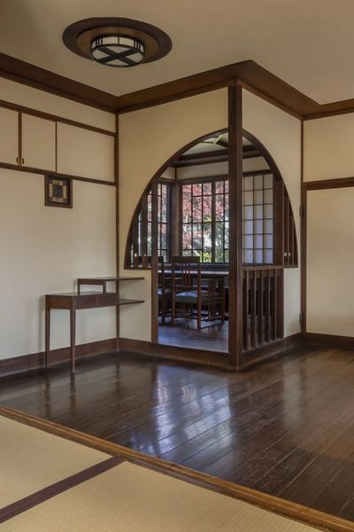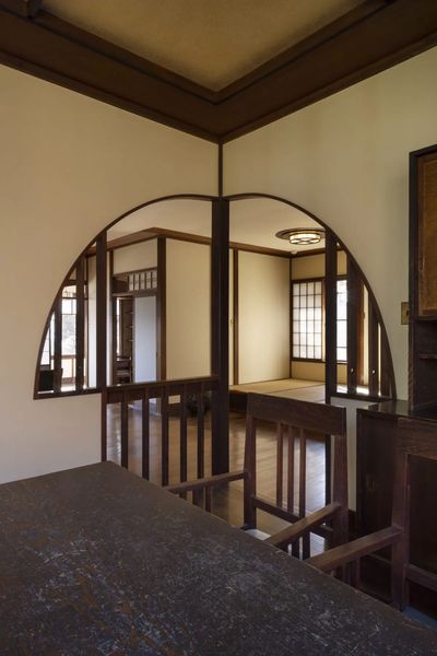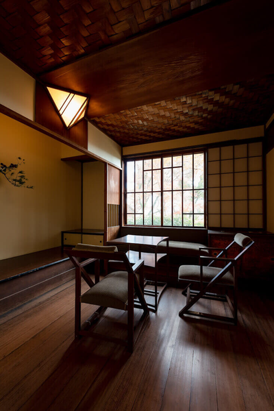 世纪初从西方传入的家具能够和谐地融入日式空间,藤井厚二将客厅的榻榻米抬高了约一英尺(